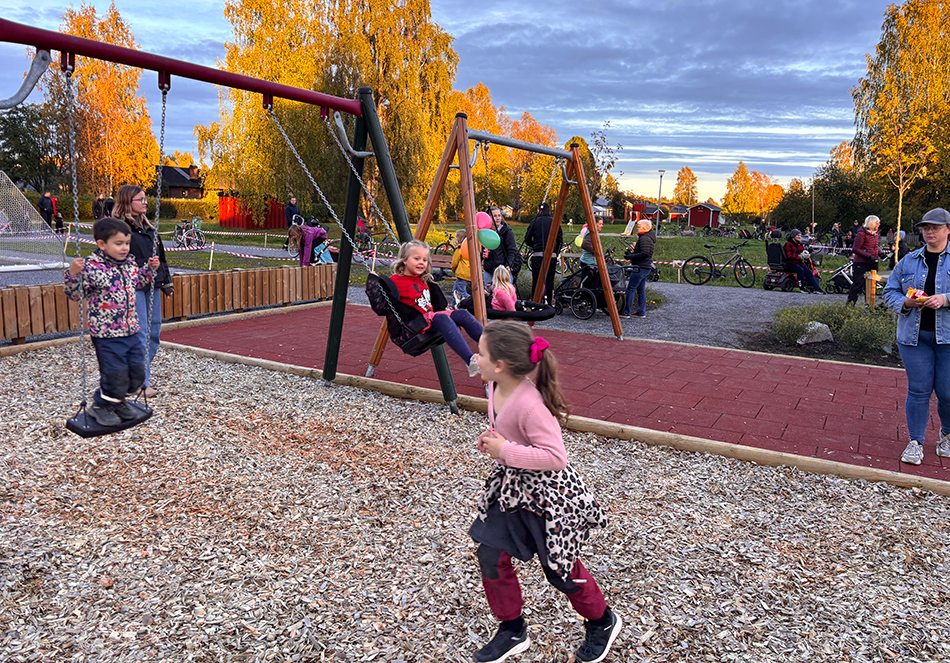 Det var folkligt och festligt vid invigningen av Rödklöverstigens lekplats.