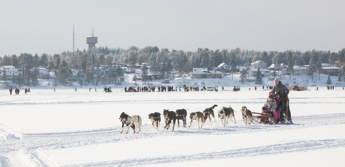 Under Luleå On Ice erbjuder DNA kortare slädhundsturer för både barn och vuxna – mitt på isen i Södra Hamn.