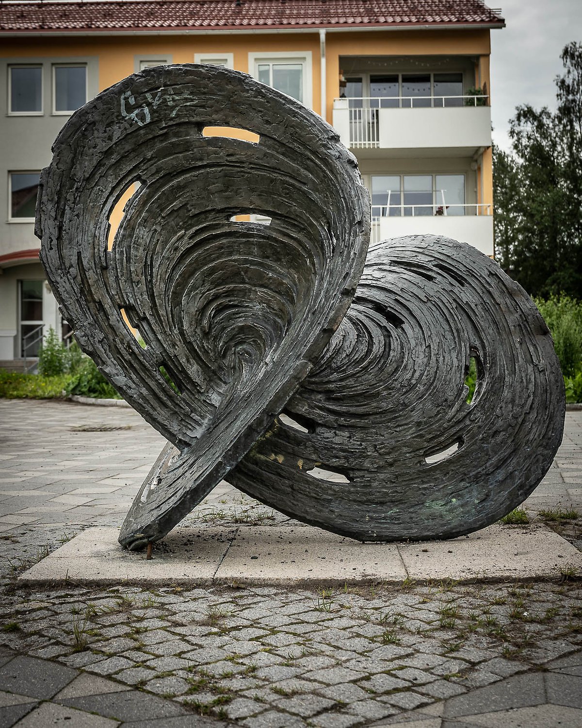 När ögonen följt skulpturens vindlingar en stund och man kanske gått runt den för att betrakta dess konstruktion, ser man vilken välkänd form som utgör dess grund: en liggande åtta , som den gamla domussymbolen, som vridits ut till en tredimensionell form, till vad som av matematikerna kallas ett möbiusband.